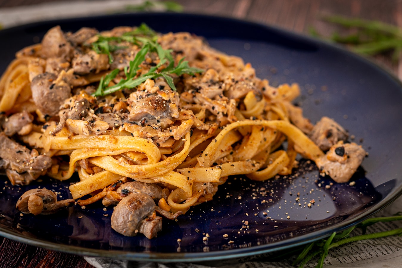Vegane Pasta „Carbonara Style“ mit Pilzen und Tempeh – einfach & lecker