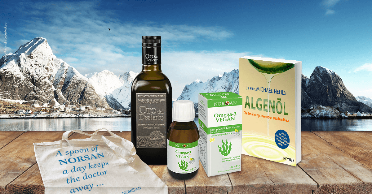 Für das 7. Kalendertürchen stellt NORSAN 3 vegane Omega-3-Sets im Wert von jeweils ca. 70 € zur Verfügung. Jedes Geschenkset enthält: