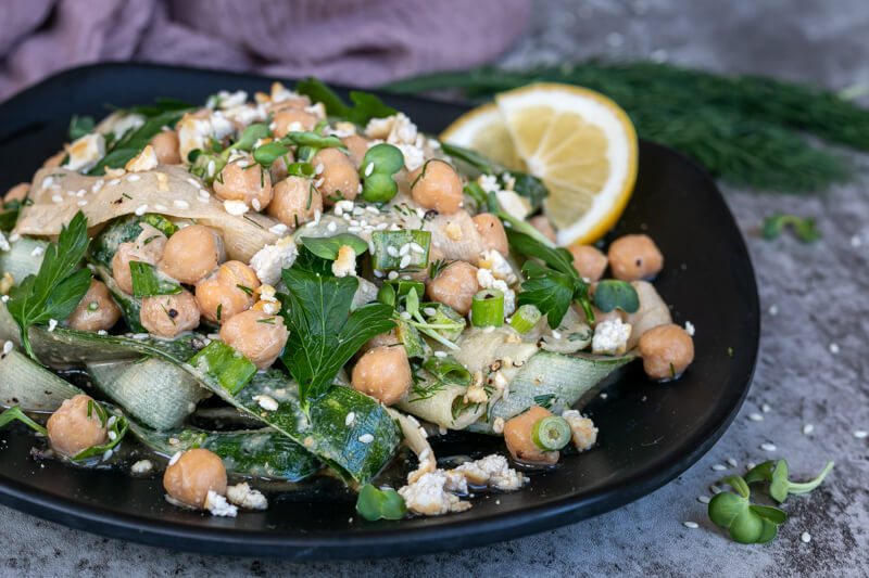 Sehr lecker 🙂 Ich habe mir den Gurkensalat soeben mit einem veganen Fetaersatz auf Kokosölbasis gemacht und ausser Kichererbsen alle Zutaten verwendet. So einen leckeren Gurkensalat hatte ich schon lange nicht mehr. Fein! Dankeschöön.